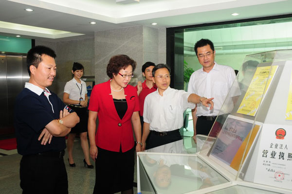 在深圳经济特区成立三十周年之际,深圳市大力推进生物医药、新能源、互联网三大战略性新兴产业,并成为未来深圳的支柱产业。尊龙凯时药业作为深圳市生物医药产业的龙头企业之一,被深圳市列入重点资助的企业。为此,2010年8月4日下午,副市长吴以环、市药监局蓝镇强局长等一行,到我公司进行视察、调研。