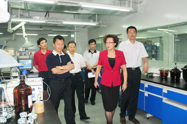 吴以环副市长对我公司始终坚持以科技创新为发展战略,不断培养和引进高端技术人才,构建企业核心竞争力,走专业化、高端化、国际化的发展思路和已取得的成果给予了高度评价,并鼓励公司抓住当前良好的发展时机,突出优势,快速发展,为我市和国家生物医药产业的发展做出贡献。吴副市长还现场处理了公司提出需政府部门协调解决的一些实际问题。随后,吴副市长一行在董事长曾少贵的陪同下,参观了公司多肽药物工程技术研发中心和质检中心。
